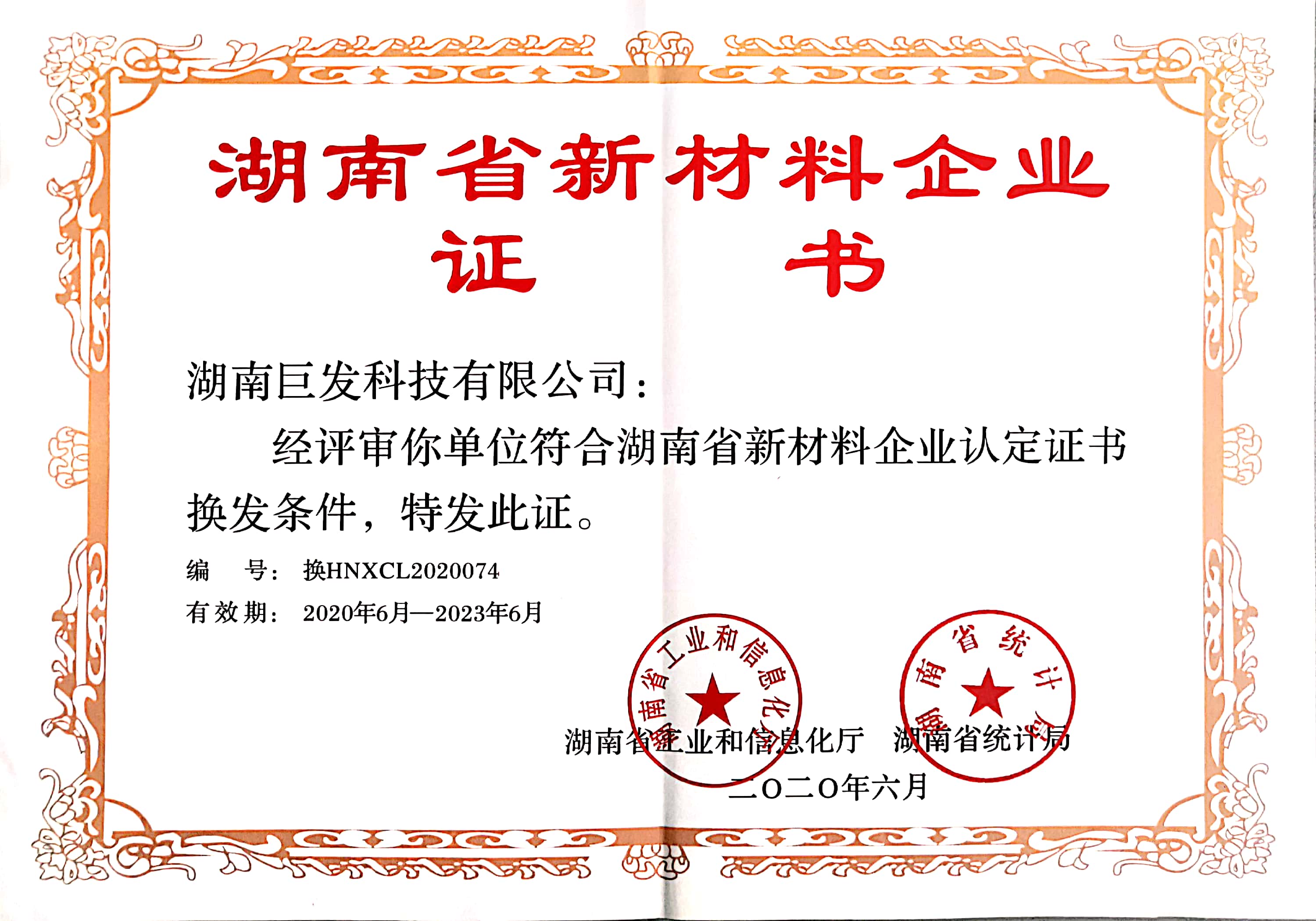 湖南省新材料企业证书
