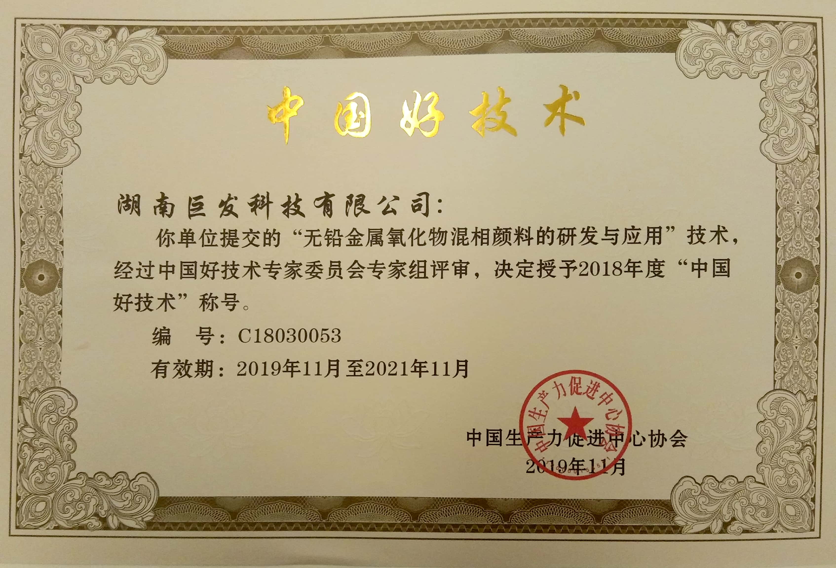 中国好技术证书
