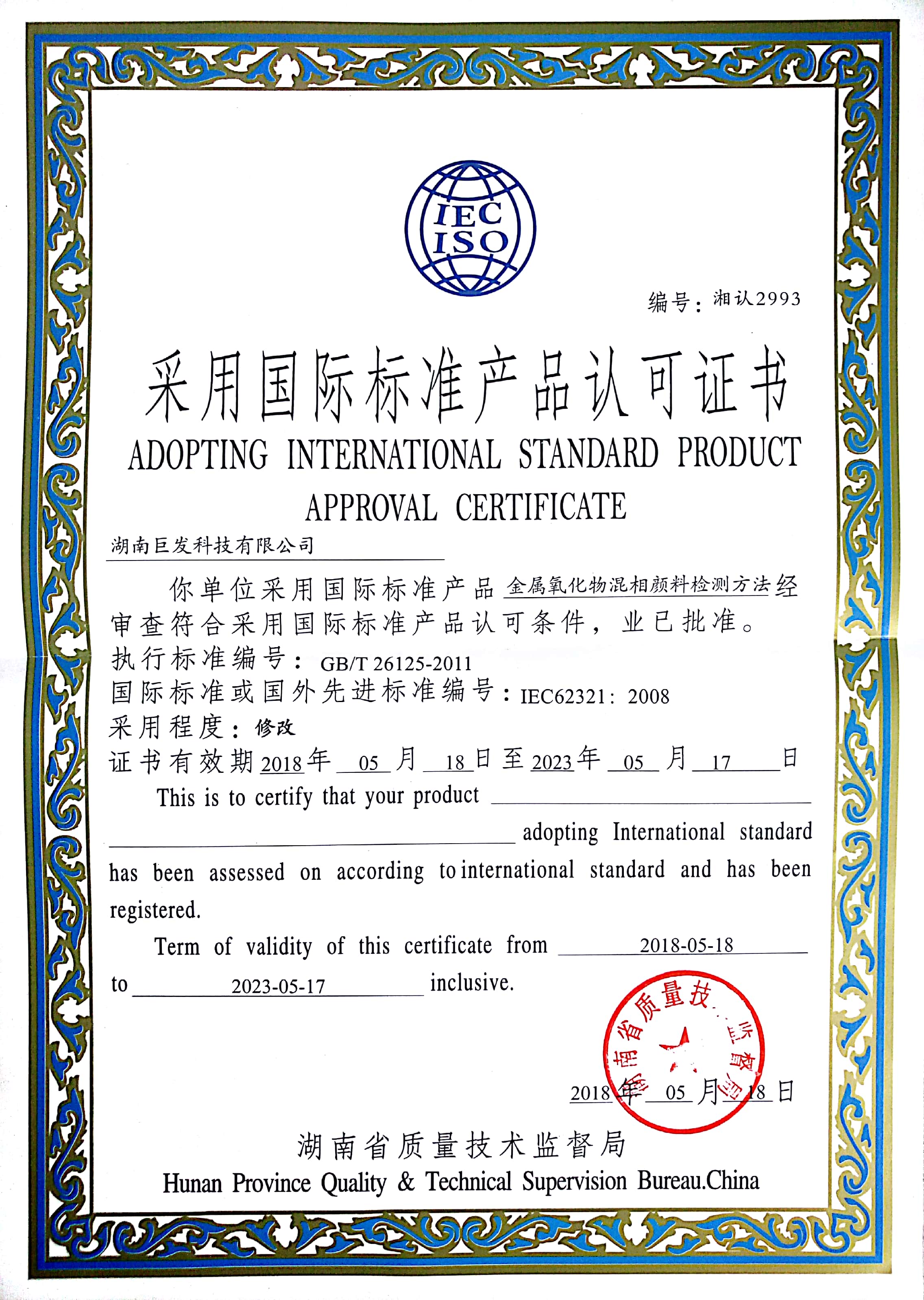 公司“红外反射颜料技术创新项目”、“无铅金属氧化物混相颜料”及“含铅颜料替代品-彩色复合混相颜料”相继荣获湘潭市科技进步奖湖南省科技进步奖与中国石油和化学工业科技进步奖;