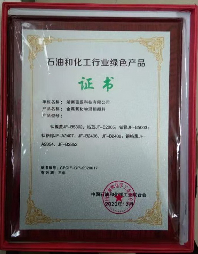 公司现拥有50余项国家专利;公司金属氧化物混相颜料产品2020年荣获中国石油和化工行业绿色产品殊荣;钛镍黄、钛铬棕、铜铬黑、钴蓝、钴绿、铁铬黑6种产品荣列国家工信部公布的国家级“ 绿色设计产品”(第五、六批绿色制造名单)。