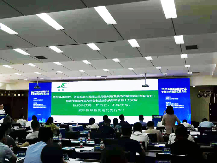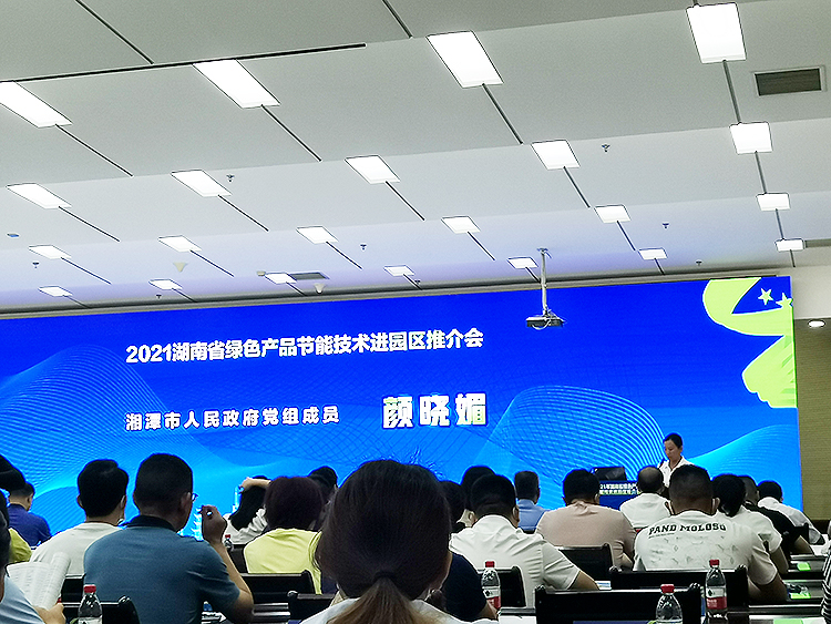 推介会旨在进一步提升全省绿色制造化水平,促进湖南省“三高四新”战略的实施,稳步推进谋划碳达峰碳中和工作,促进绿色产品、节能技术与园区企业深度融合,推动全省工业经济转型升级和高质量发展。湖南省工信厅二级巡视员吴毅龙、湘潭市政府党组成员颜晓媚、湘潭经开区党工委书记胡海军、湘潭经开区党工委副书记蒋谦等领导参加。
