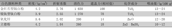 表 1 几种白色颜料主要性能对比